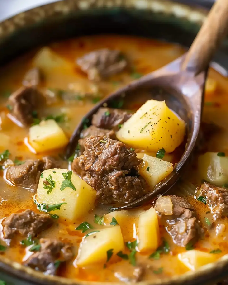 In conclusion, beef and potato soup is not just a meal; it’s an experience that brings warmth to your home, especially on those chilly evenings. This hearty dish offers both comfort and nutrition, combining tender beef, creamy potatoes, and flavorful vegetables into a delightful bowl.