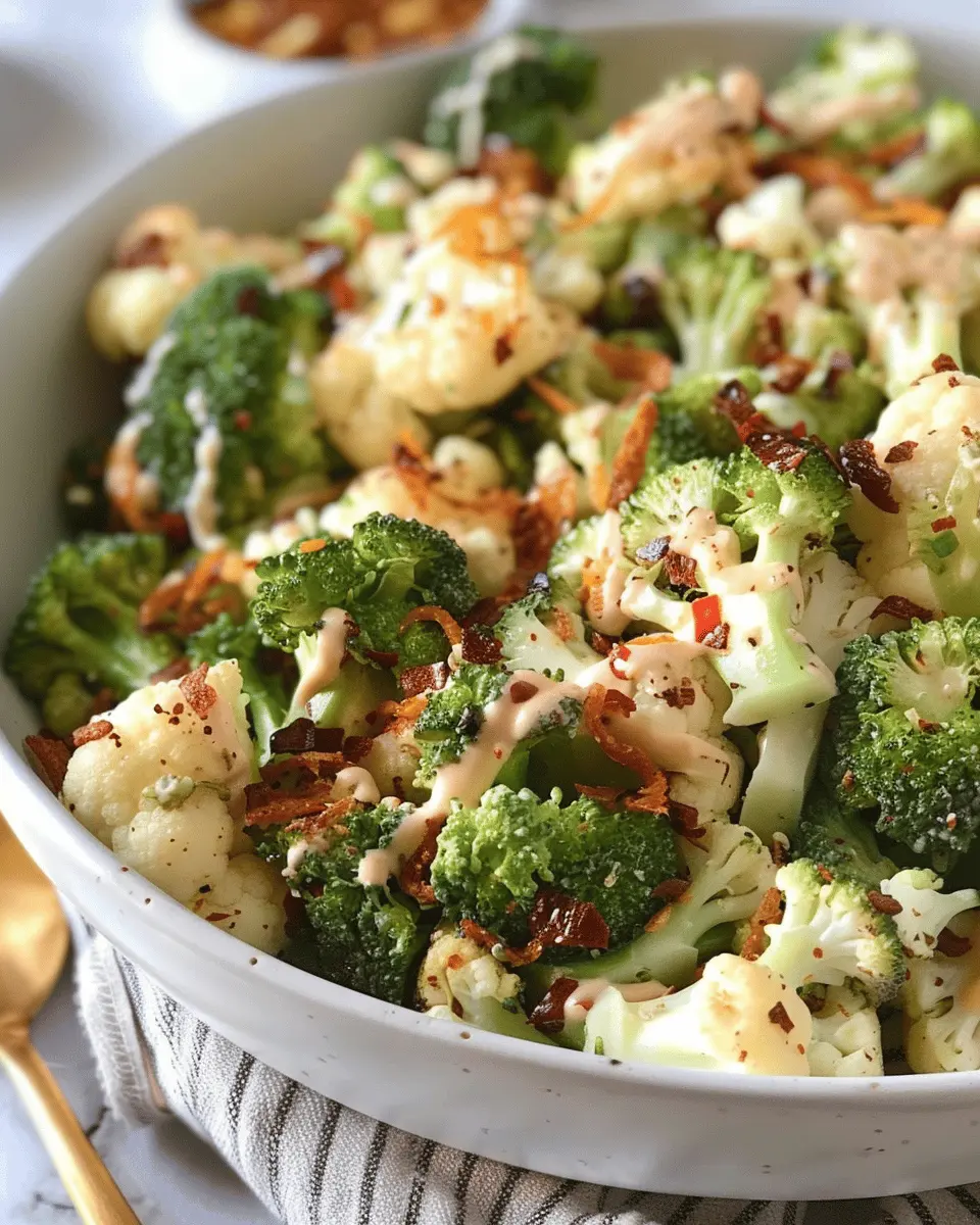 So, what is it about this salad that makes it a favorite among food enthusiasts? First and foremost, let’s talk about the health benefits. Both broccoli and cauliflower belong to the cruciferous vegetable family and are known for their anti-inflammatory properties. They’re high in fiber which promotes a healthy digestive system and can help you feel full longer—ideal for those trying to maintain their weight. According to the USDA, these veggies are also loaded with vitamins C, K, and A, making them a nourishing choice.