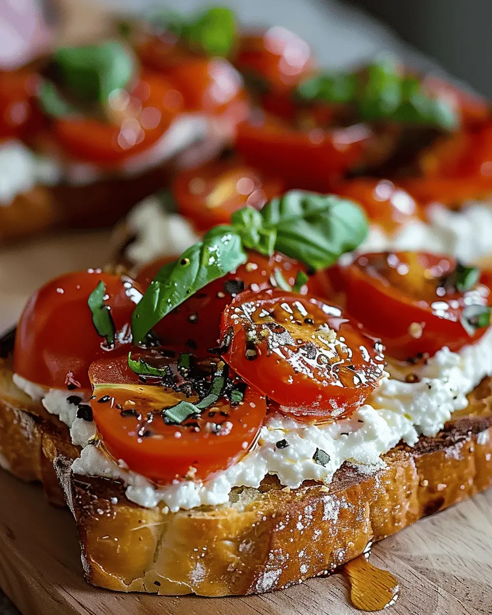 A serving of Caprese Cottage Cheese Toast clocks in at approximately 250 calories, making it a fantastic option for anyone seeking a nutritious meal without breaking the calorie bank. This balance of taste and low caloric impact allows you to enjoy each bite guilt-free, whether it’s breakfast, lunch, or a snack.