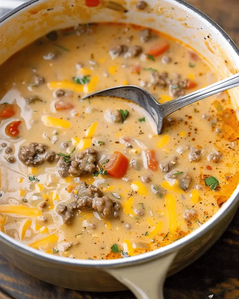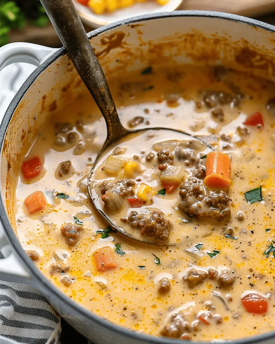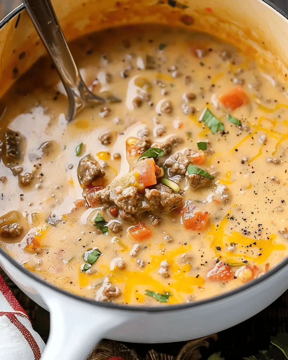 No matter which variation you choose, every bowl of cheeseburger soup is a delightful blend of flavors and textures. What’s your favorite version? Let’s get cooking!