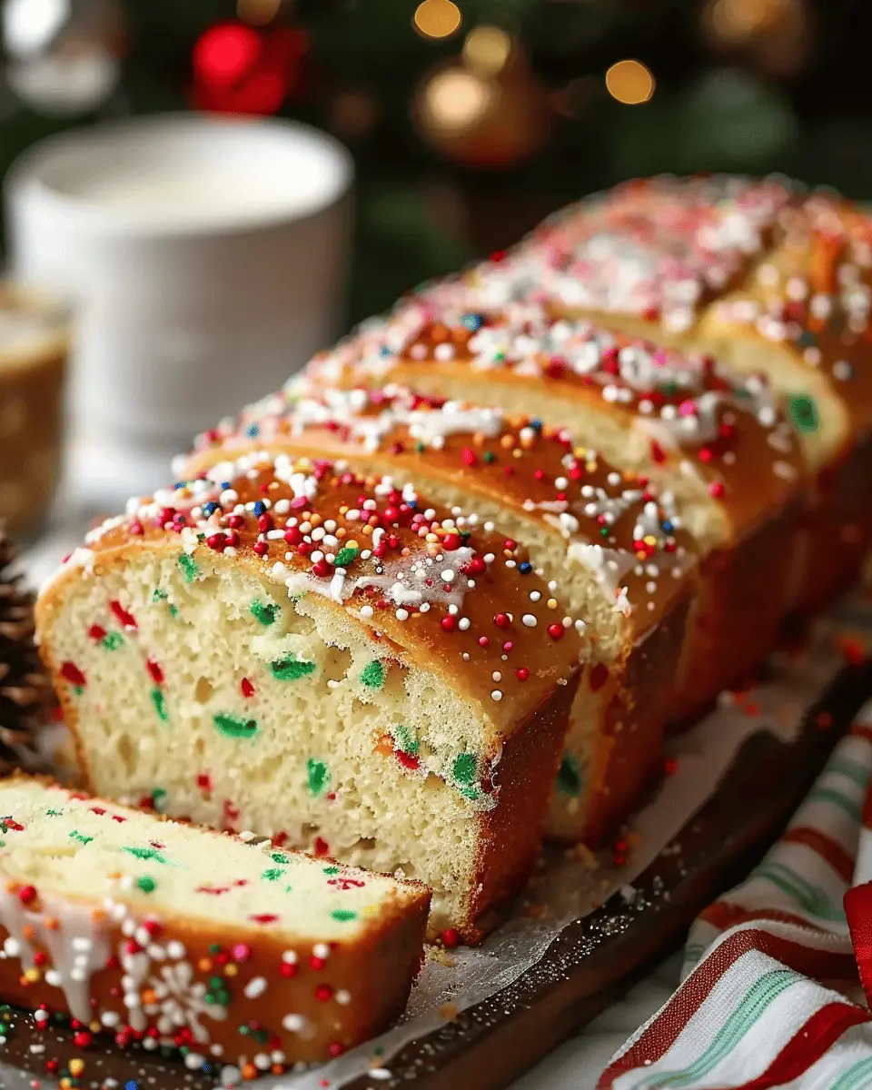 This Christmas Sprinkle Buttermilk Bread is a delightful festive treat perfect for the holiday season.