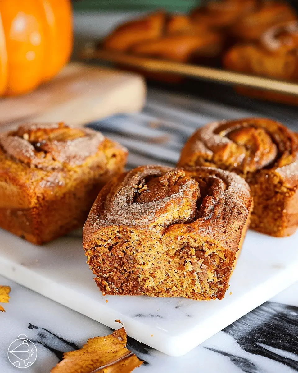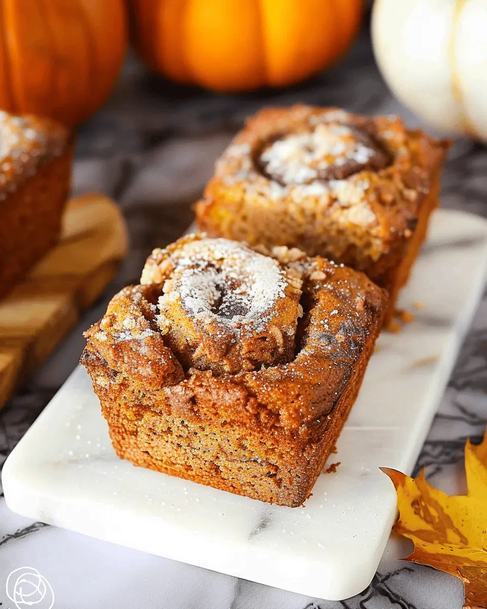 Delight in the warmth of fall with these Cinnamon Swirl Pumpkin Bread Mini Loaves, perfect for sharing with loved ones.