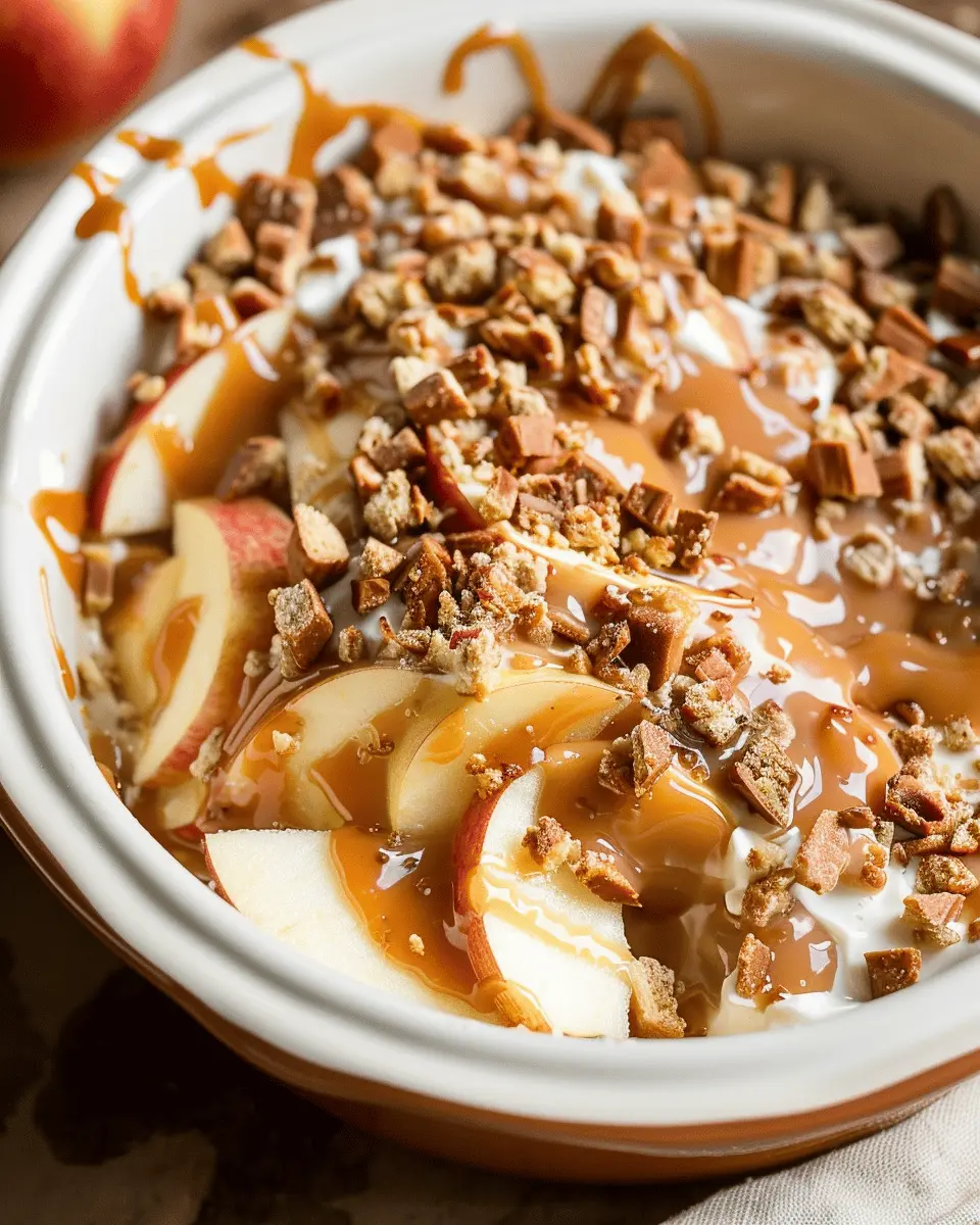 PrintCream Cheese Caramel Apple Dip: An Indulgent Treat with Toffee Bits