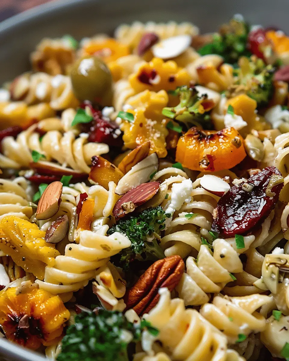 For those of us balancing work, social life, and personal commitments, quick and nutritious meals are crucial. This Fall Harvest Pasta Salad is a game-changer. First off, it’s incredibly versatile. You can throw in whatever veggies you have on hand, making it a great way to use up leftovers or whichever seasonal produce beckons at the market. Think sweet butternut squash, crisp Brussels sprouts, and juicy apples for a mix of textures and flavors.