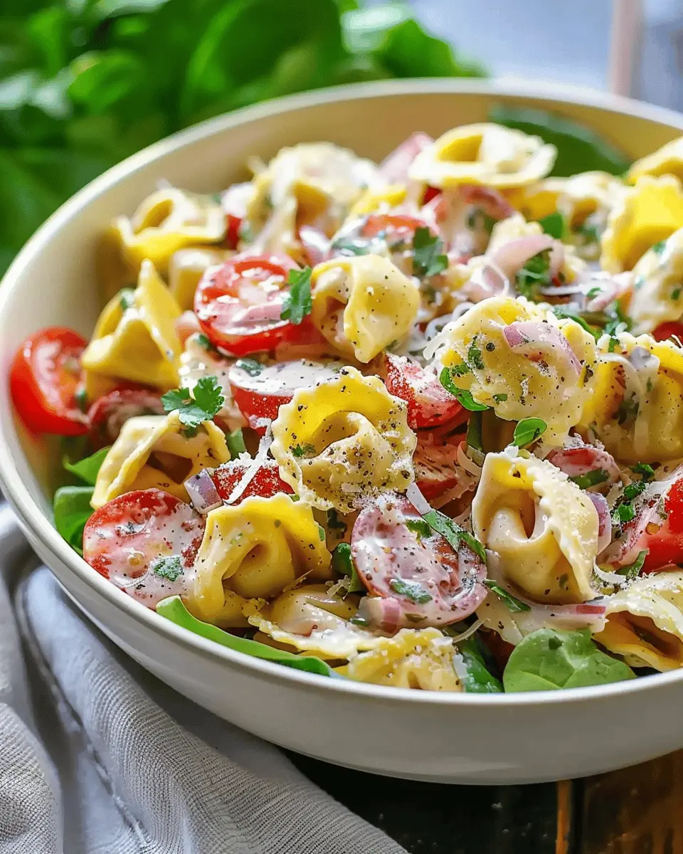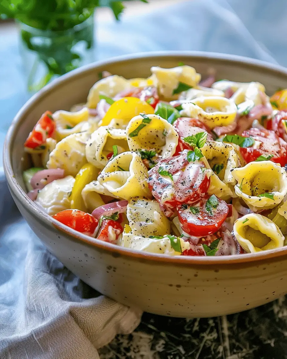 This Fresh Grinder Tortellini Salad is a delightful mix of flavors, perfect for a refreshing meal.