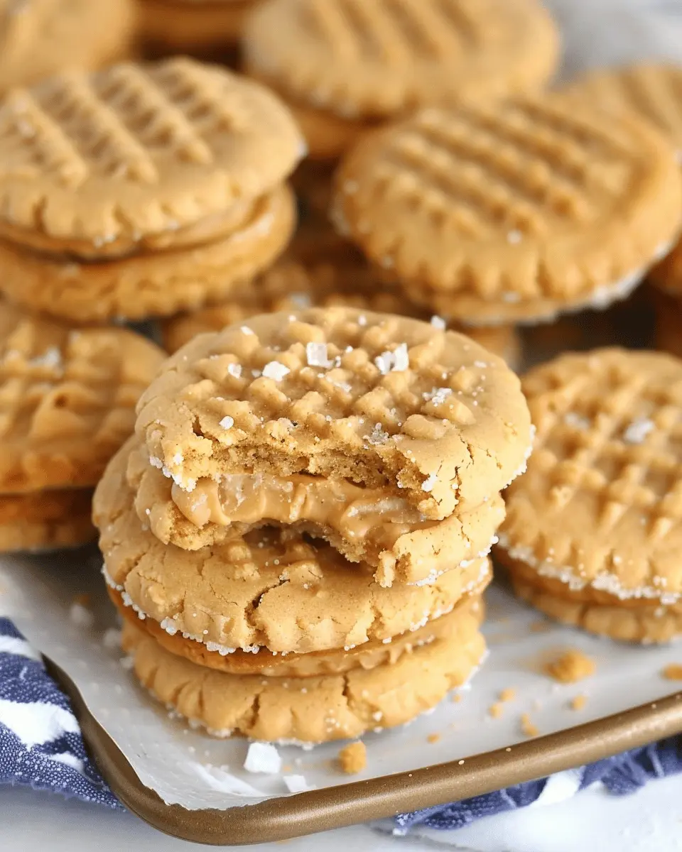 Once the cookies have completely cooled, it’s assembly time! Turn half of your cookies over (flat side up) and spoon a generous dollop of the peanut butter filling onto each one. Top with the remaining cookies, pressing gently to create a delightful sandwich.