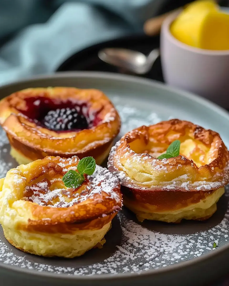 Once they’re done, remove them from the oven and take a moment to appreciate the transformation. Serve immediately with your choice of toppings—fresh fruit, syrup, or perhaps a little whipped cream. These mini Dutch baby pancakes are sure to make your breakfast unforgettable!