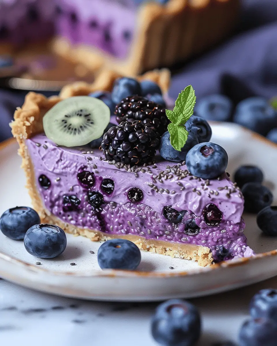 To elevate your no-bake blueberry chia seed pie, consider serving it alongside fresh fruit. A vibrant fruit salad featuring strawberries, mangoes, and kiwi not only adds color but also complements the pie’s rich flavors. If you’re in the mood for something savory, try pairing the pie with a refreshing spinach and arugula salad dressed in a light vinaigrette—this contrast in flavors will make each bite delightful.