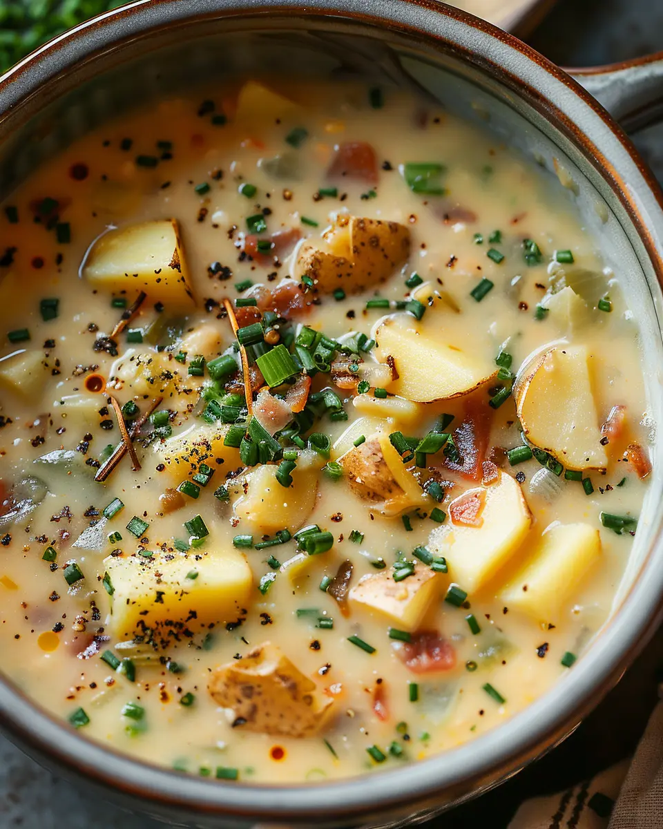 For the finishing touch, serve with your favorite toppings—shredded cheese, chopped green onions, or even a dollop of sour cream. Your Outback Potato Soup is now rich, creamy, and ready to be savored.