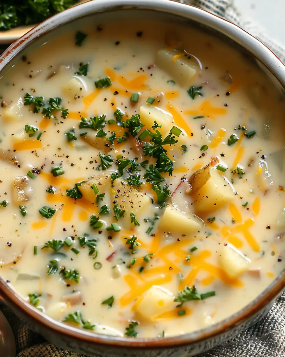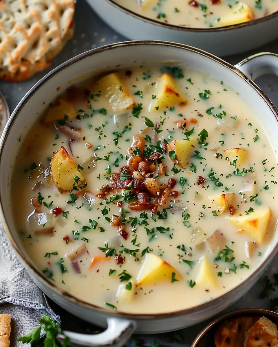 The magic lies in its perfect blend of flavors. Think creamy potatoes, rich chicken broth, and savory spices that dance on your palate. This soup doesn’t just fill your stomach; it warms your heart, thanks to ingredients like turkey bacon and chicken ham, which add a savory depth that’s hard to resist. Plus, it’s a lovely way to showcase simple ingredients transformed into something extraordinary.