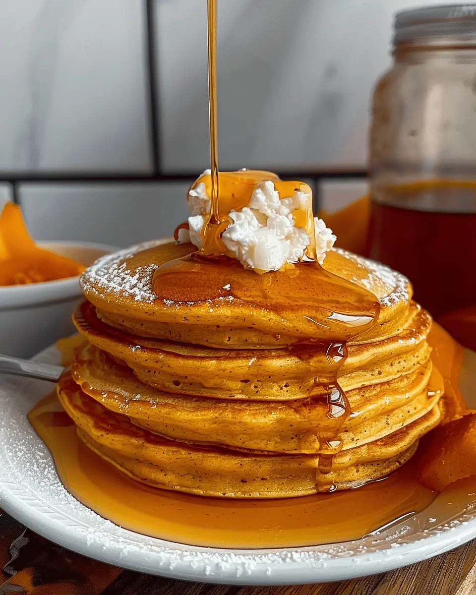 PrintPumpkin Cottage Cheese Pancakes: The Best Cozy Comfort Food