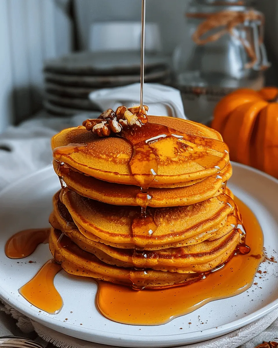 Gather your friends or loved ones and enjoy these pancakes together—they’re perfect for brunch or a cozy breakfast. Did you know that pumpkin is packed with vitamins and fiber? What a delicious way to start your day!