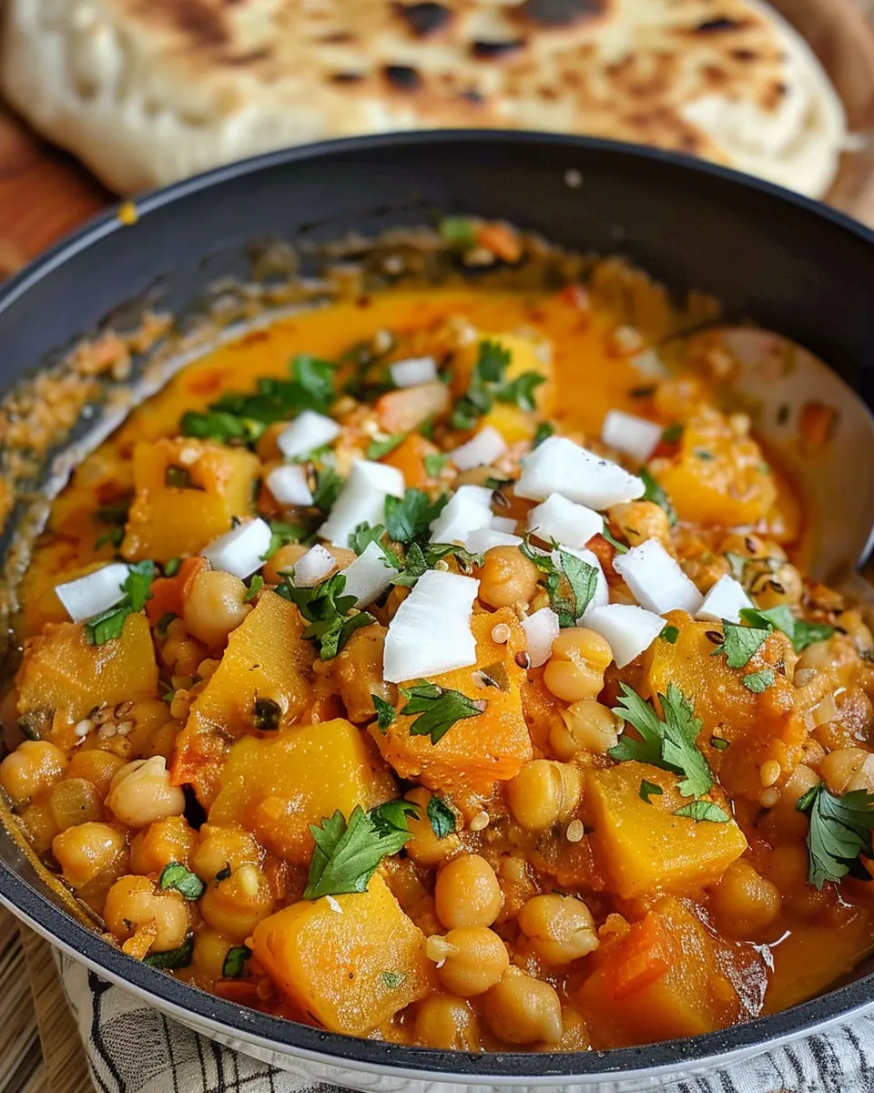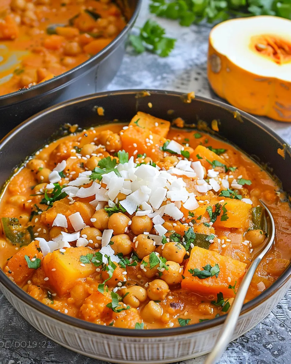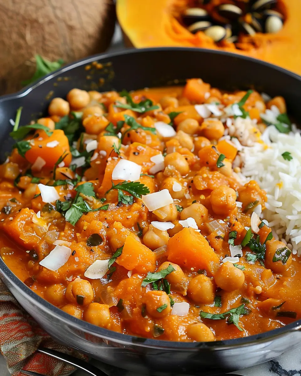 A delicious and easy recipe for pumpkin curry with chickpeas and coconut, perfect for comfort food lovers.