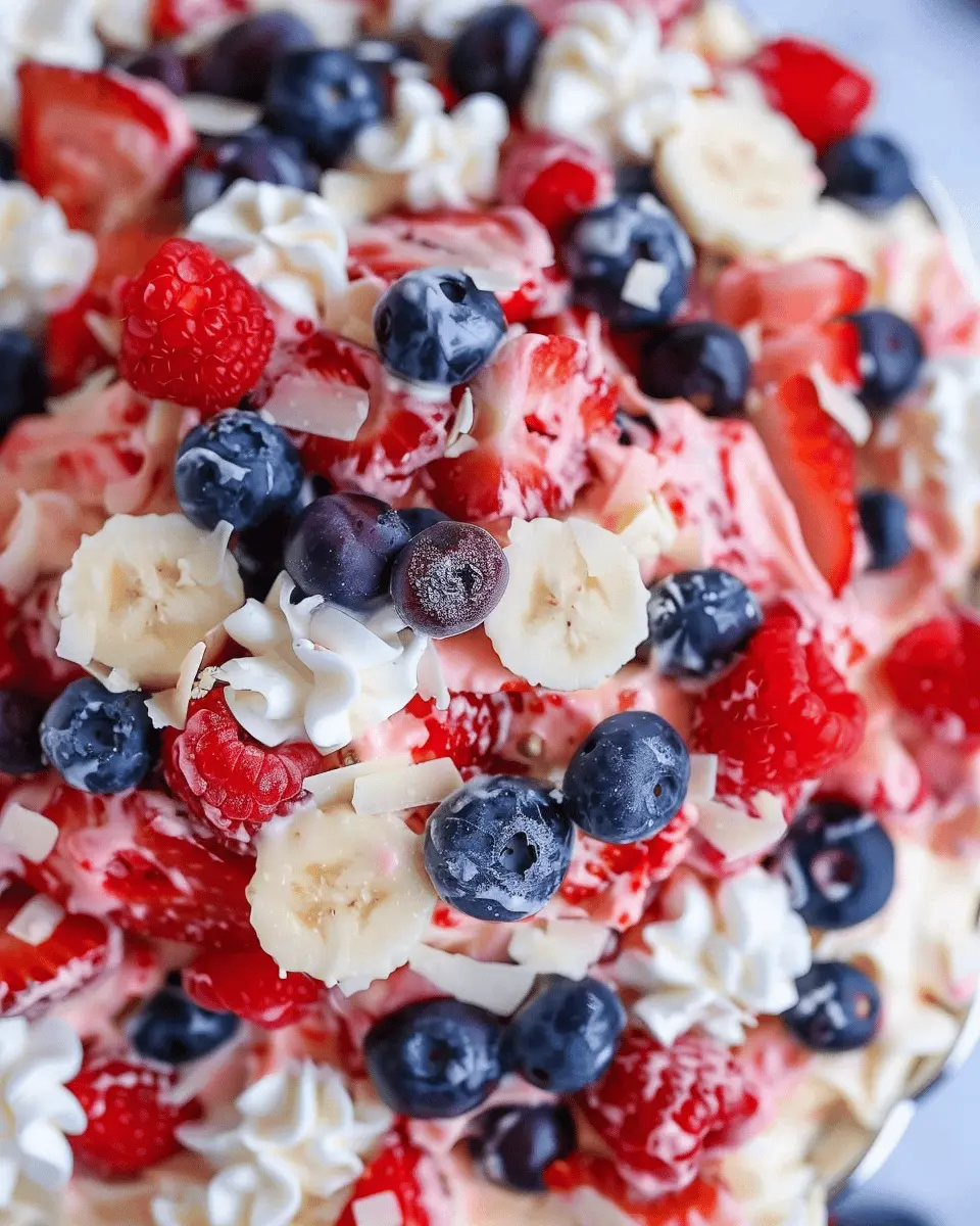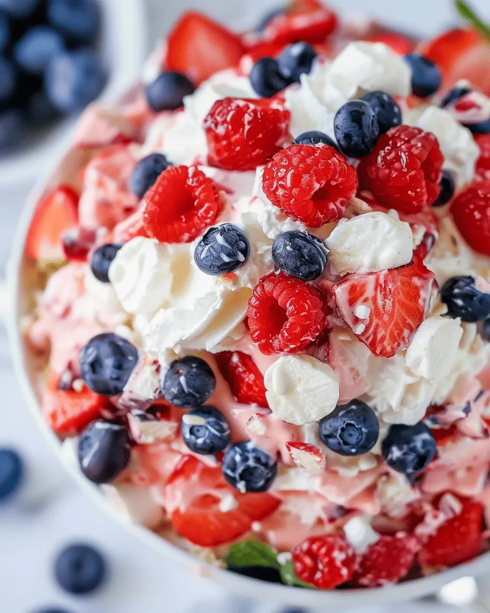 PrintRed White and Blue Cheesecake Salad: A Refreshingly Easy Delight