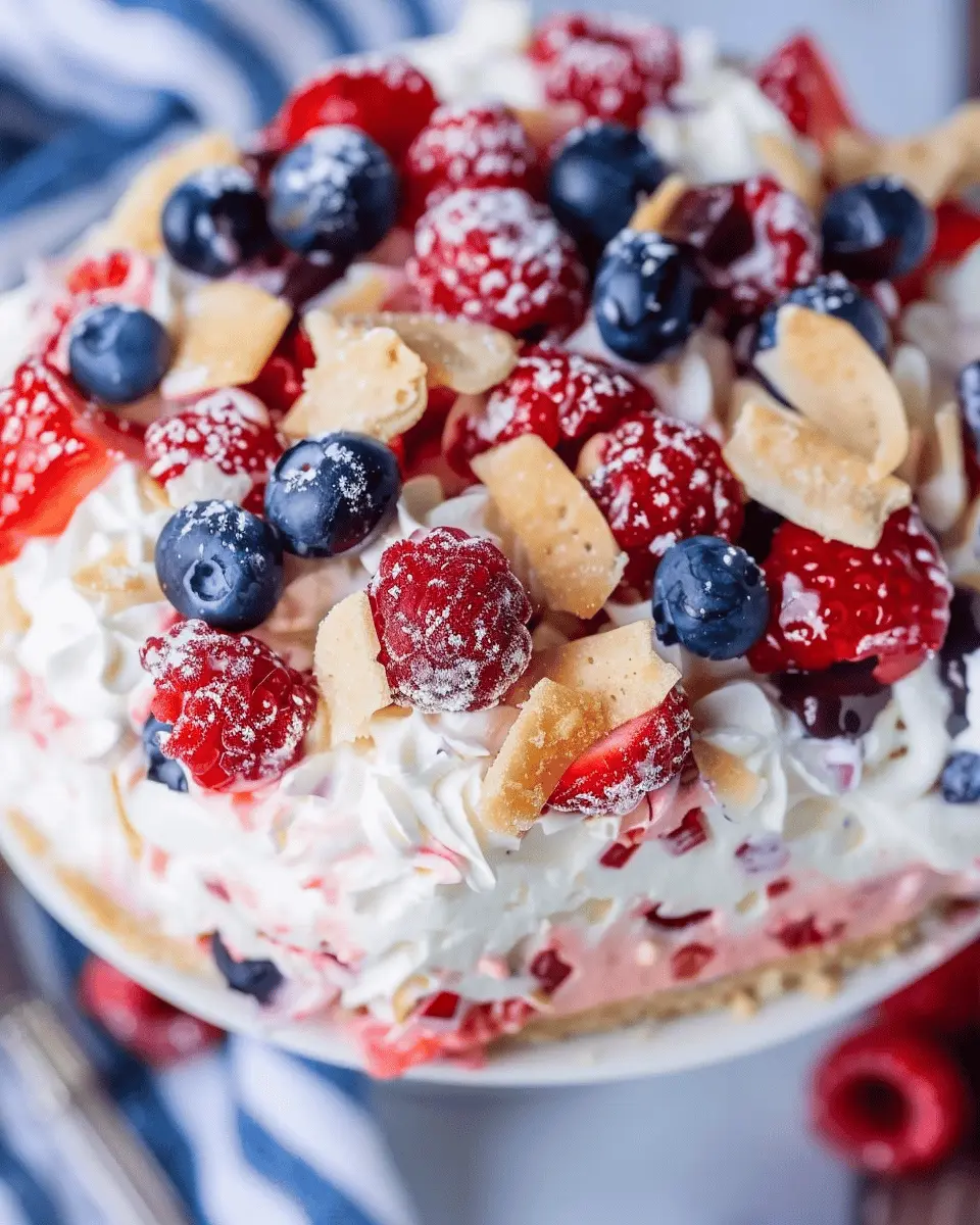 A delicious and patriotic dessert that combines creamy cheesecake flavors with fresh berries.