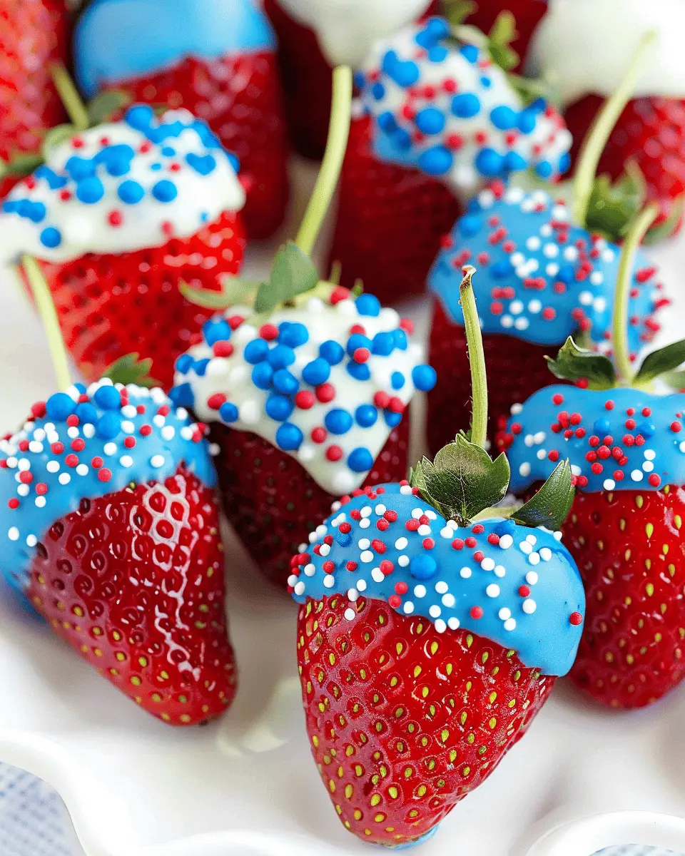 If you’re looking for a delightful way to impress your guests, Red, White & Blue Chocolate Covered Strawberries could be just the ticket. You can find beautiful serving ideas and other fun dessert concepts at sites like Food Network and Martha Stewart. Let’s dive into the recipe and bring a delicious twist to your next celebration!
