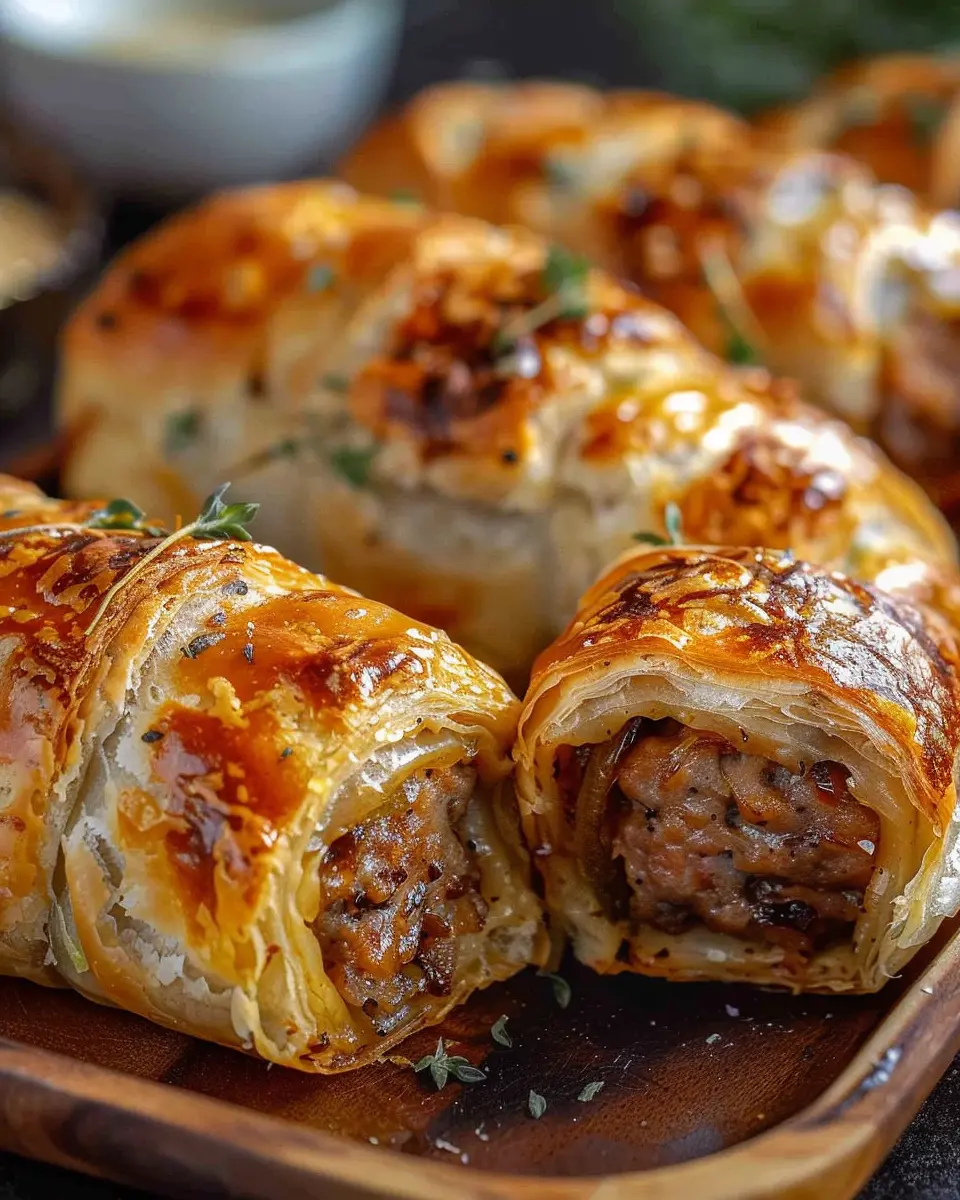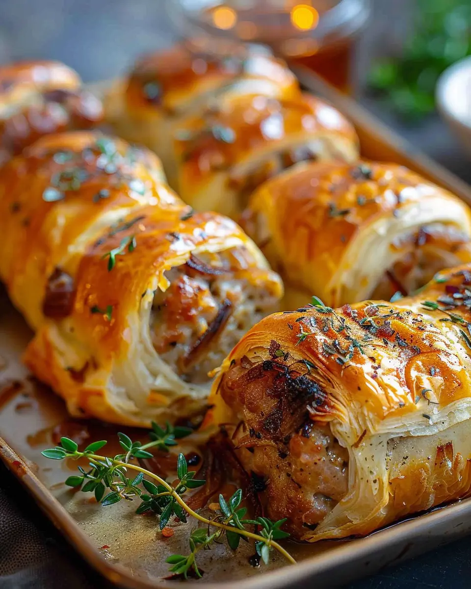 These Savory French Onion Sausage Rolls are golden, flaky, and packed with flavor. Ideal for any occasion!