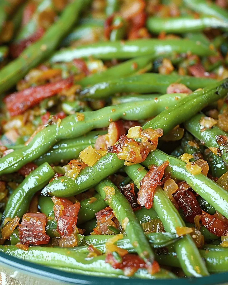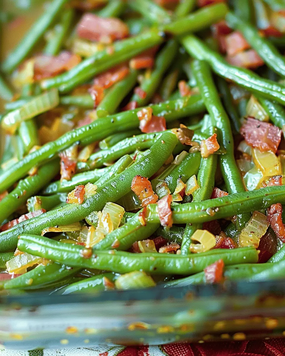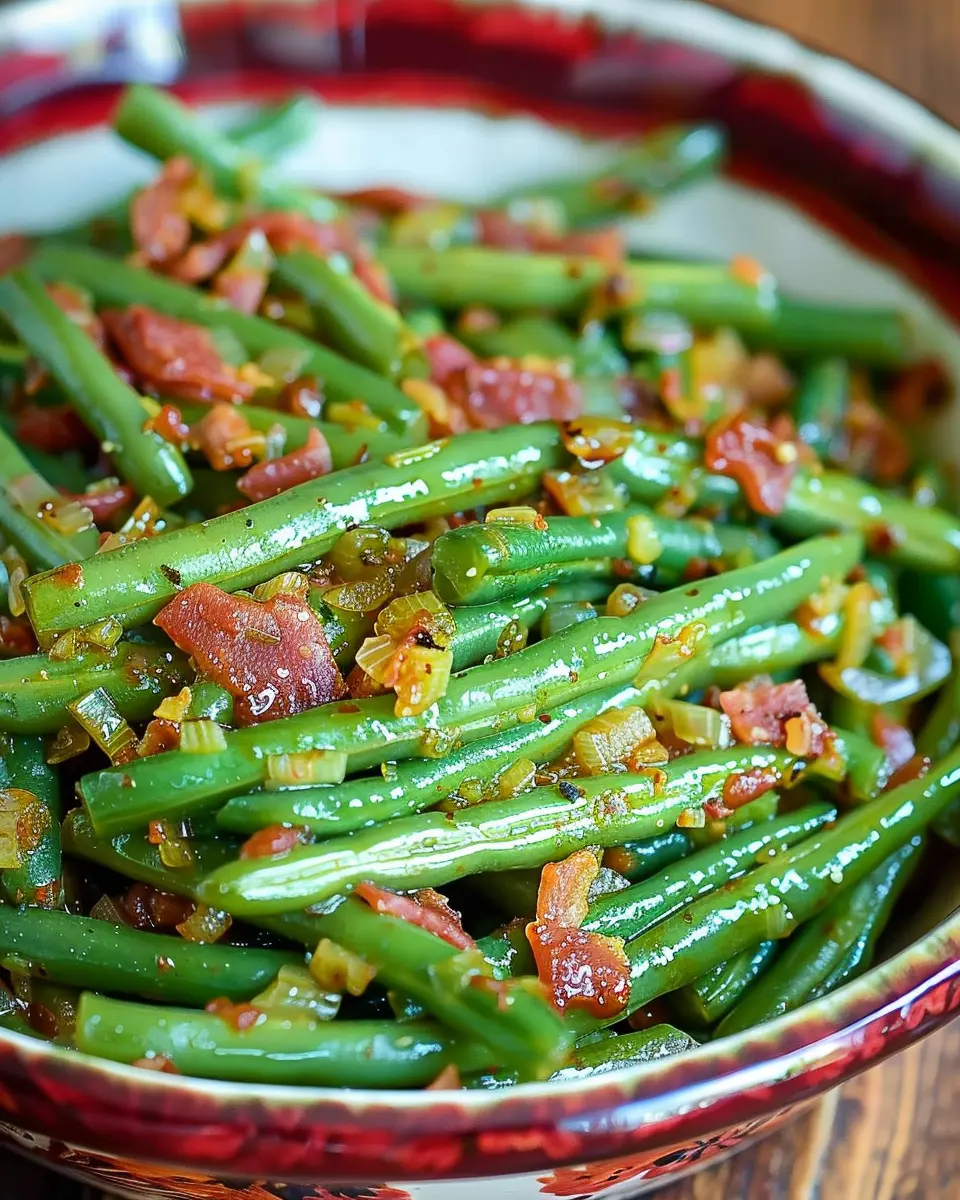 PrintSmothered Green Beans: Easy Recipe with Turkey Bacon Delight