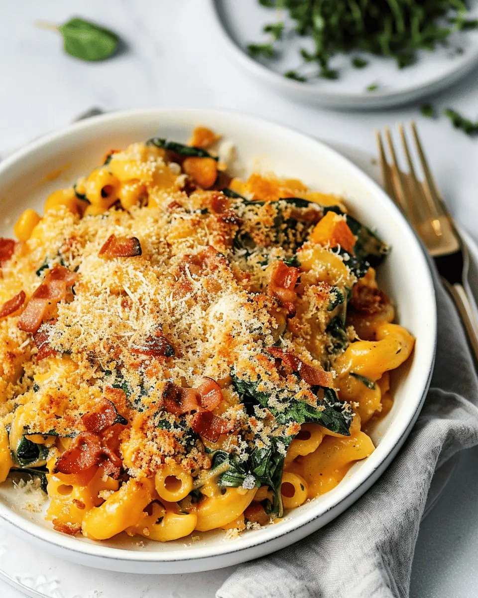 By mixing and matching these ingredients, you can create your version of spinach bacon pumpkin mac and cheese, tailored to your taste. For more inspiration, check out this guide on mac and cheese variations to discover endless possibilities!