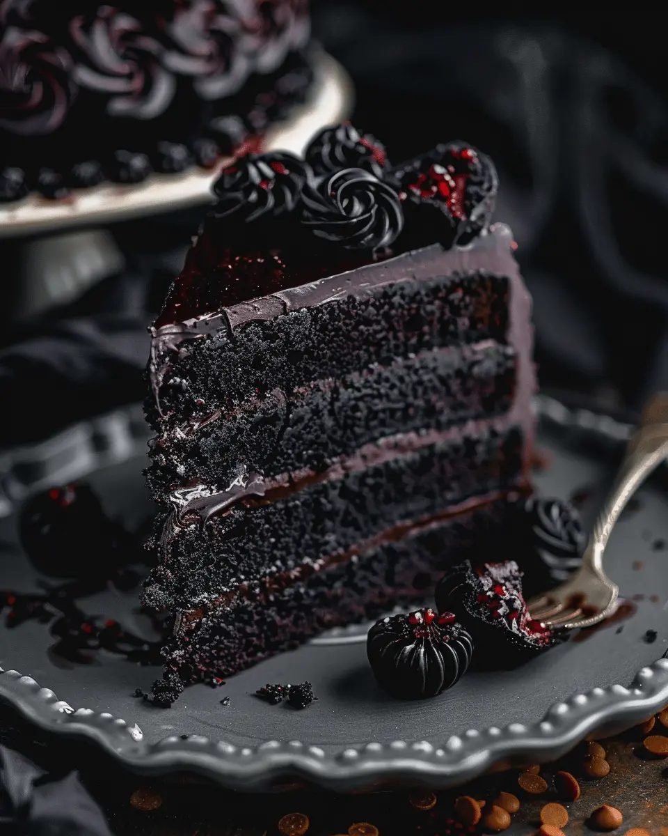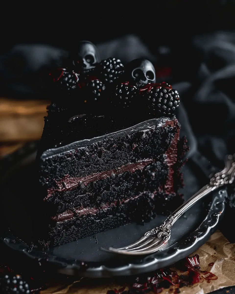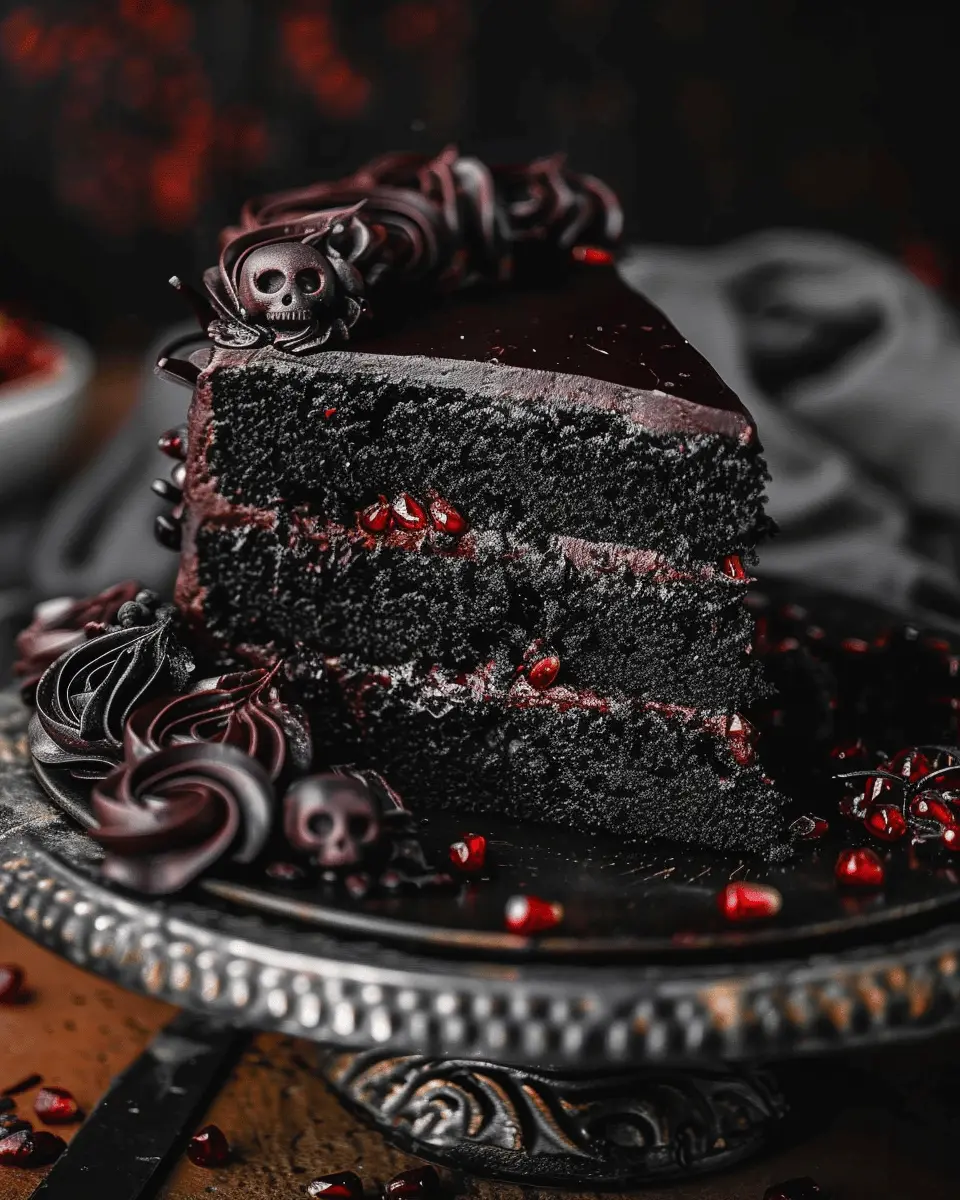 This cake, with its rich, dark color and velvety texture, perfectly captures the spirit of Halloween. Have you ever noticed how food at Halloween often takes on a personality of its own? A cake that looks as if it stepped right out of a haunted house is sure to be the life of any gathering. According to various culinary experts, desserts don’t just satisfy our sweet tooth; they also bring people together, creating moments of connection and joy.