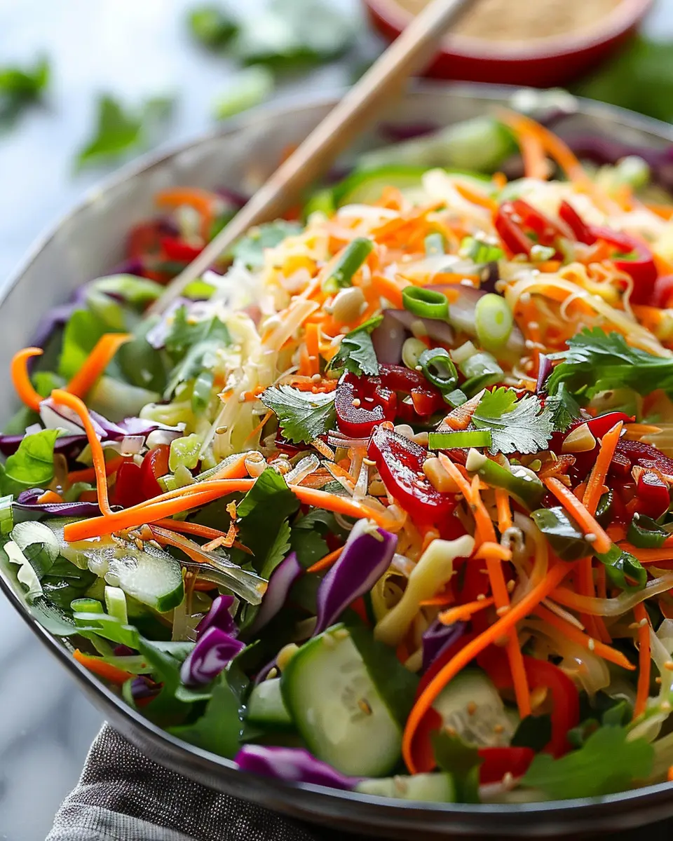 Creating a vibrant spring roll salad is not only a treat for the taste buds but also a feast for the eyes. With fresh ingredients and a delightful spicy ginger dressing, this dish bursts with flavors that can transport you straight to a summer market in Southeast Asia. Let’s get started on assembling this delicious and refreshing salad!