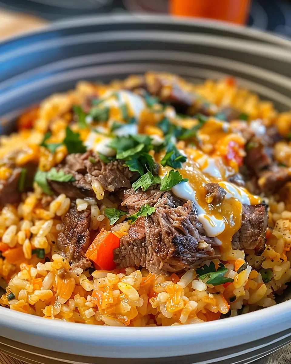 PrintSteak Queso Rice: The Juicy Comfort Food You’ll Crave