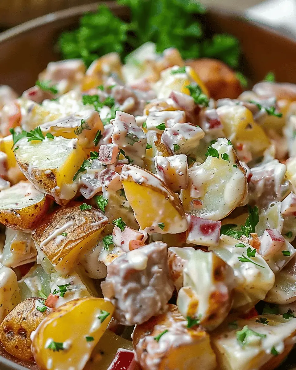 One of the most exciting aspects of this recipe is its versatility. You can serve it at summer barbecues, casual weeknight dinners, or even as a side for holiday gatherings. It pairs beautifully with grilled meats and can turn a simple meal into something truly memorable. According to a survey from the National Potato Council, nearly 90% of Americans enjoy potato salad at summer cookouts—why not elevate yours this season?