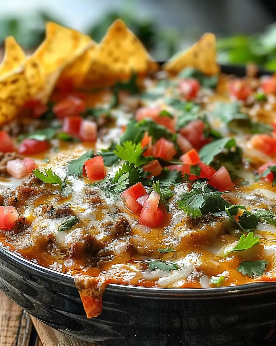 Once it’s out of the oven, let the dip sit for a few minutes. While you wait, set up a dipping station with your favorite tortilla chips and fresh veggies. It’s a small but meaningful touch that enhances the whole experience.
